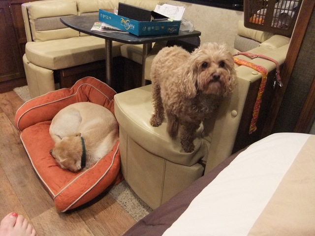 We eventually brought out the long rope so he could run out to the water and chase some balls. The two pups were pooped come bedtime! I love being able to wear them out! ![]()