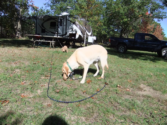Jamba has to be attached to us and isn’t allowed at dog parks. We were the only ones there for the first 20 minutes. Being October there were not that many visitors…