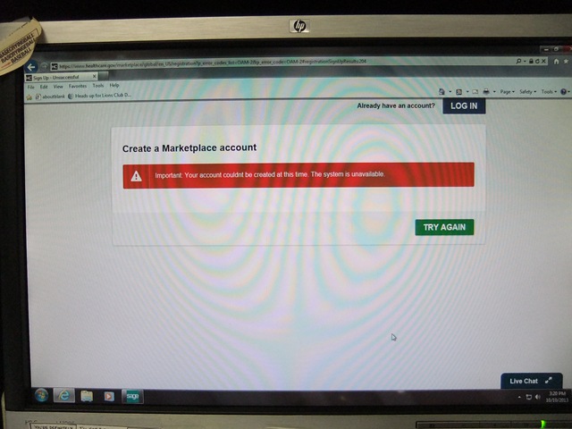 I guess what is the most frustrating for me about this ACA website roll-out is that I can’t even SEE the plans available. I have been trying for two weeks and still I get this…