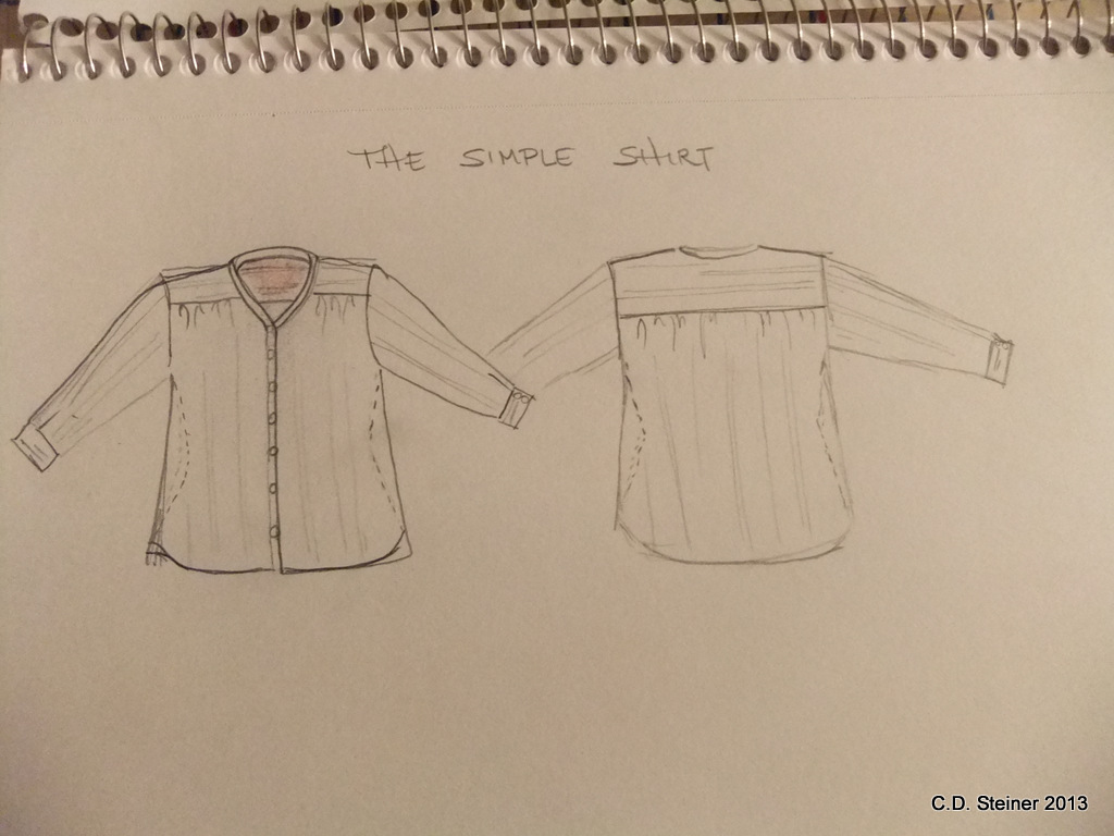 I read or hear about designers that have ideas come to them in the middle of the night and they’ll get up and sketch, putting the idea on paper, and letting it be recorded so they can go back to sleep. I practiced this method a week ago when I woke to an idea for a shirt and denim skirt…