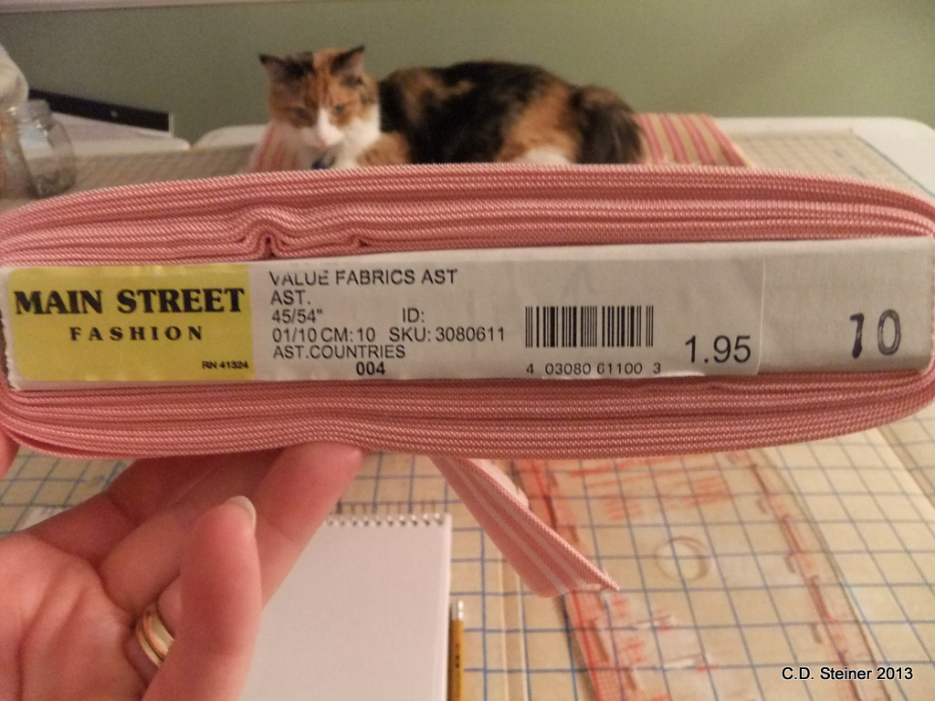 I’d guess it is a blend but the best part about this bolt was the price, $1.95 a yard. You just can’t beat that, unless you are able to tack on a discount coupon to get if for even less, to make up samples!
