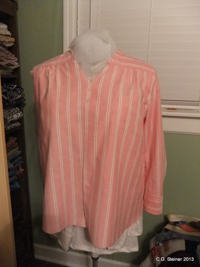 Enter the sample fabric. I love finding fabric bargains to use as samples. This particular bolt of fabric came from Hancock Fabrics a few years back. It is a heavier weight shirting…
