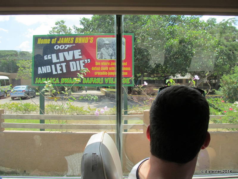 Back on the bus we slowed down at two billboards. The famous location where James Bond jumped an alligator (above) and Usain Bolt’s childhood home.