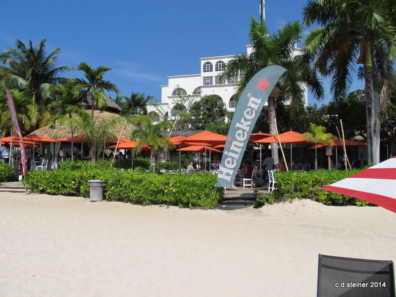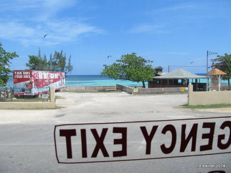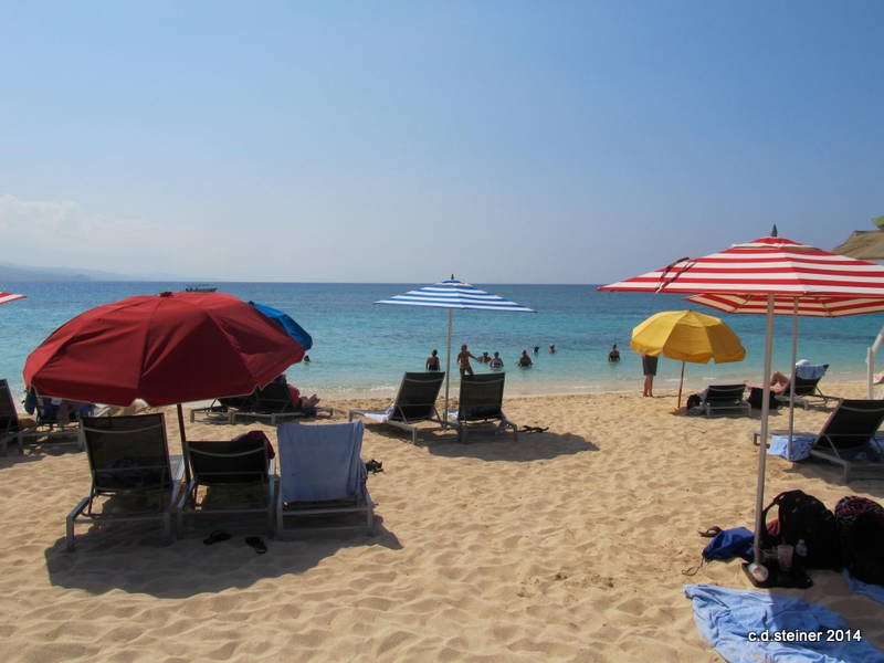 We had lunch in Montego Bay. We paid $6.00 per person to enter an area with restaurants and the beach, another $12-15 per person for lunch and then we rented two chairs and an umbrella for $18.00. We had 2 hours to swim, eat and hang out before we needed to get back to the bus.