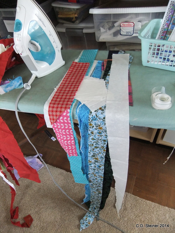 I bring them downstairs to where I have the 1941 Featherweight (the one in re-hab) and sew them together…