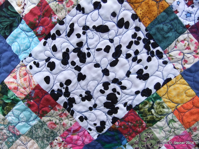 Free Motion Quilted on my Bernina Sport 801, Cotton Batting, 40wt thread in an all over pattern I call Dew Drop Backtrack.