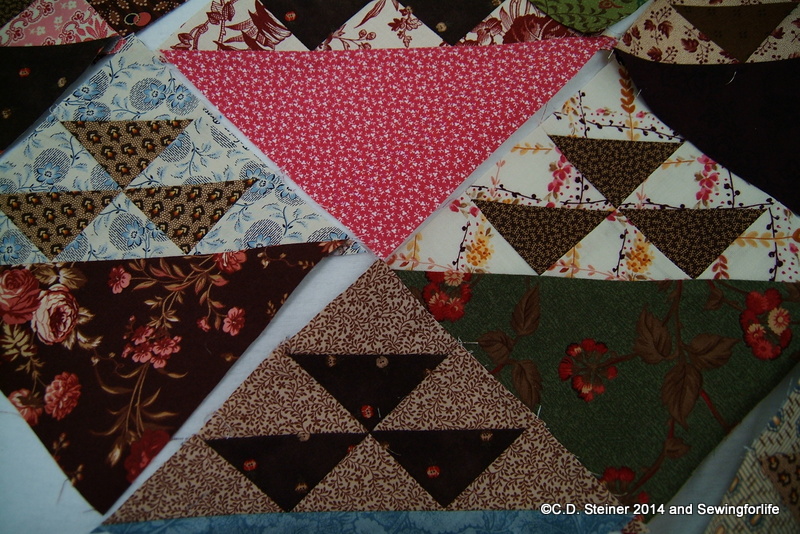 So as we wait…with more and more quilters signing up…I’ve been working on these blocks. I also have her original pattern but my blocks are three colors as opposed to her 2 color. This ones for me. I’m secretly in love with these fabrics…