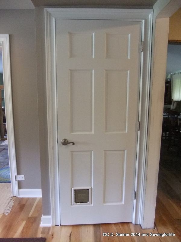 Jim finished the painting of the trim and hung the door to the basement yesterday!  For our cat Chloe Jim installed a cat door and I spent the morning teaching her how to use it…DSCF9343-002
