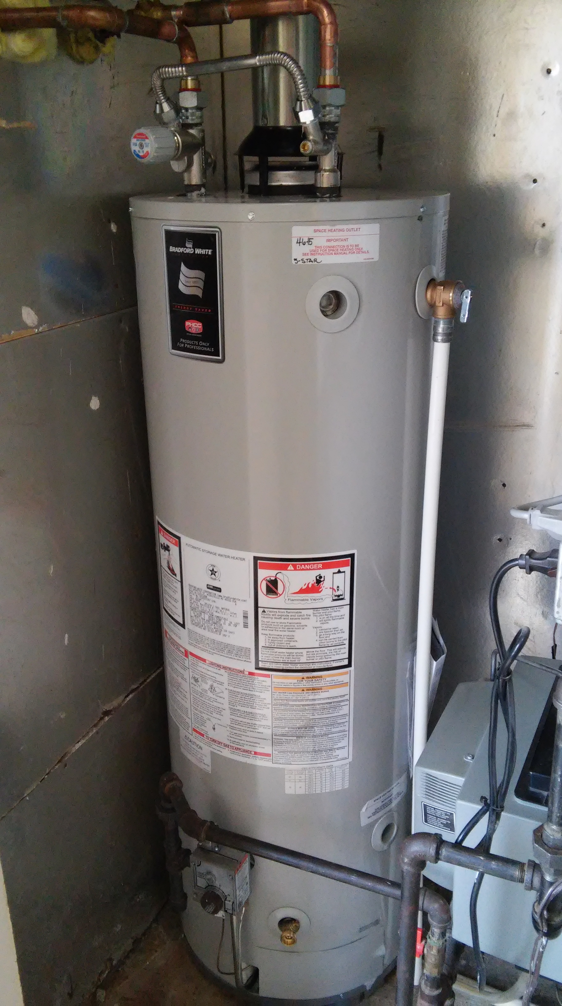 We have a new water heater installed and the flue pipe issue with our furnace is now fixed!