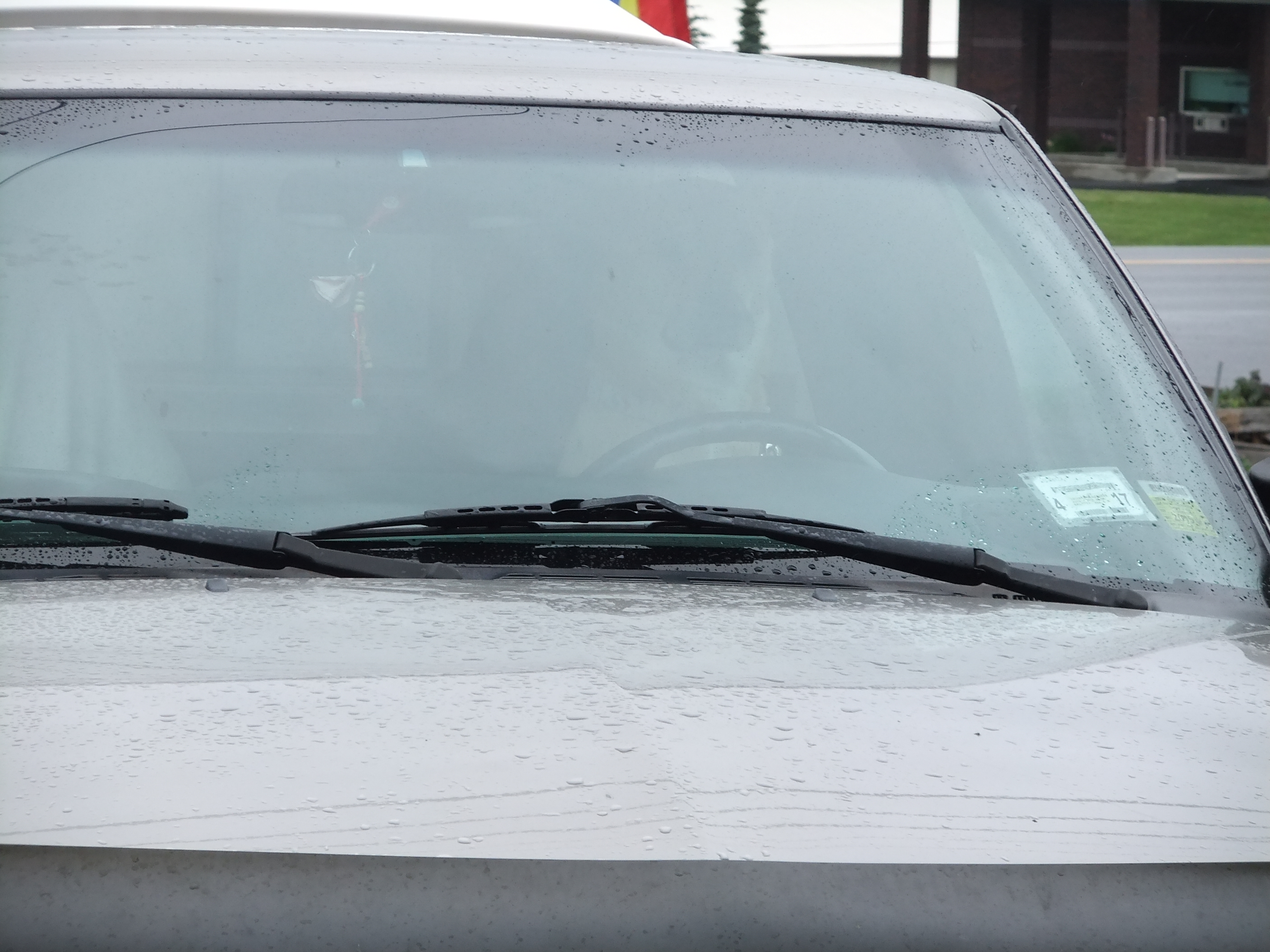 As we approached the checkpoint we decided to fill up with gas and in the parking lot of the gas station I spied this dog in the driver seat! Bad picture here…