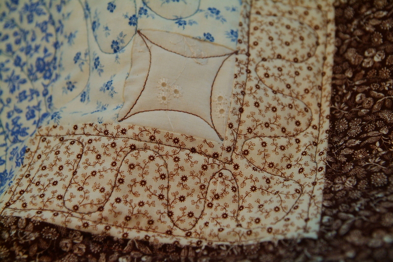 My thoughts for the first inner border is to go with an oak leaf design. We have Oak trees in the park across the street. Those leaves turn brown in the Fall and stay on the tree all winter. Reminds me somewhat of this quilt!