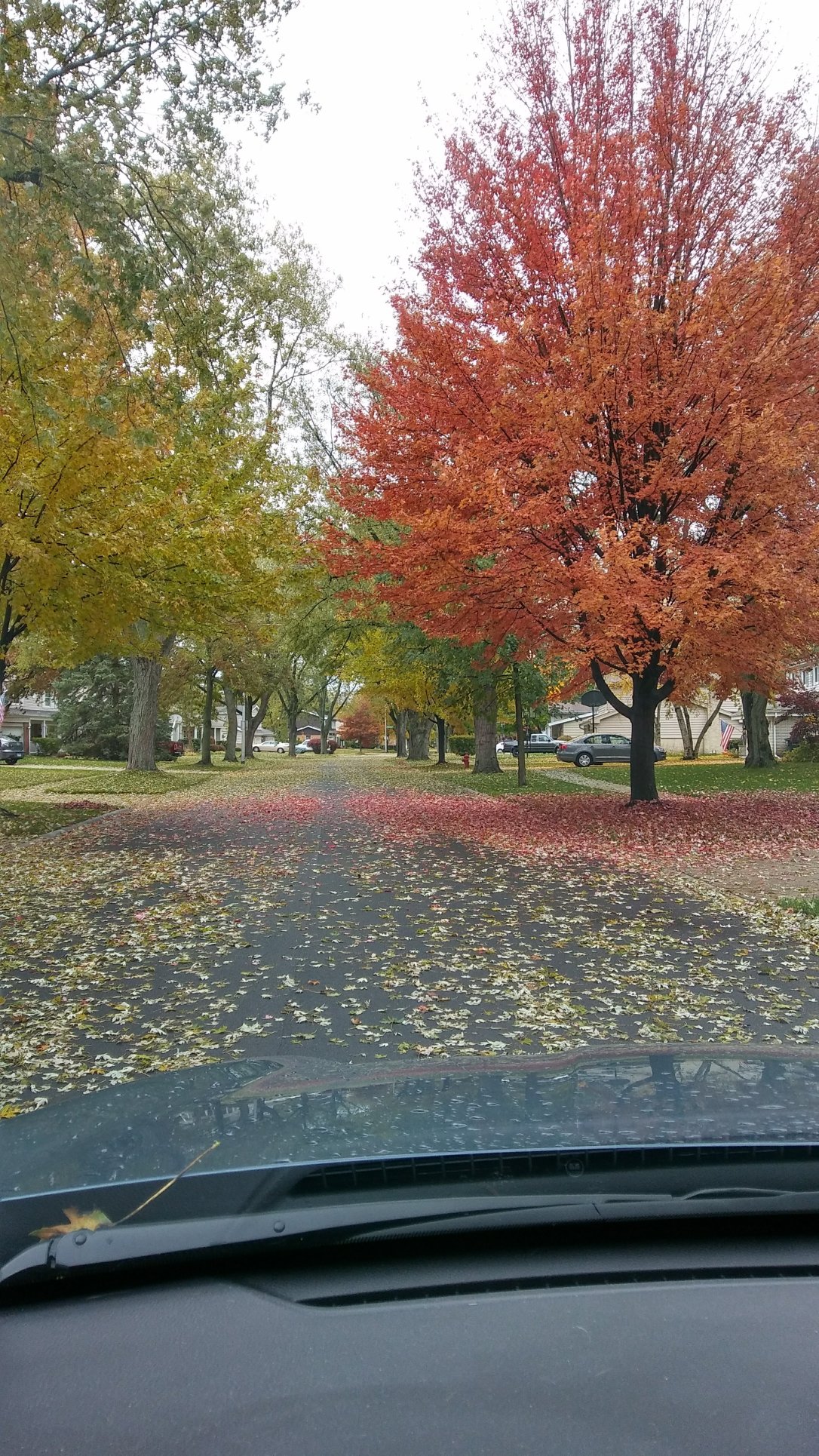 Driving home I decided to turn down a different street and stopped to take this pic. Nobody behind me so I didn’t need to pull over. I love the undisturbed leeves in the road.