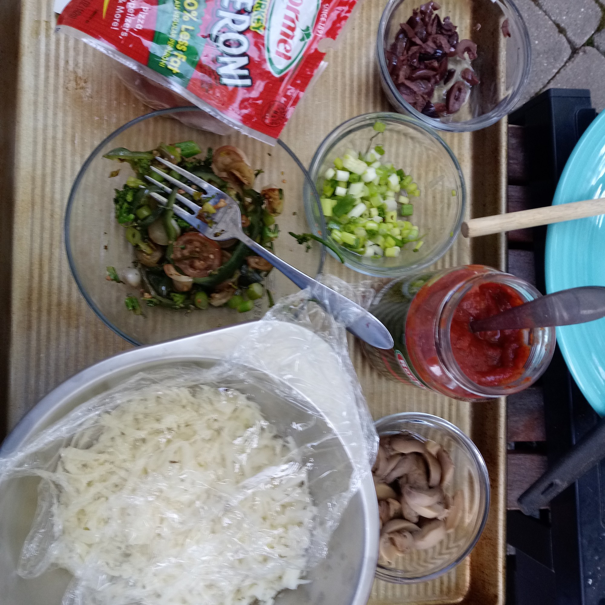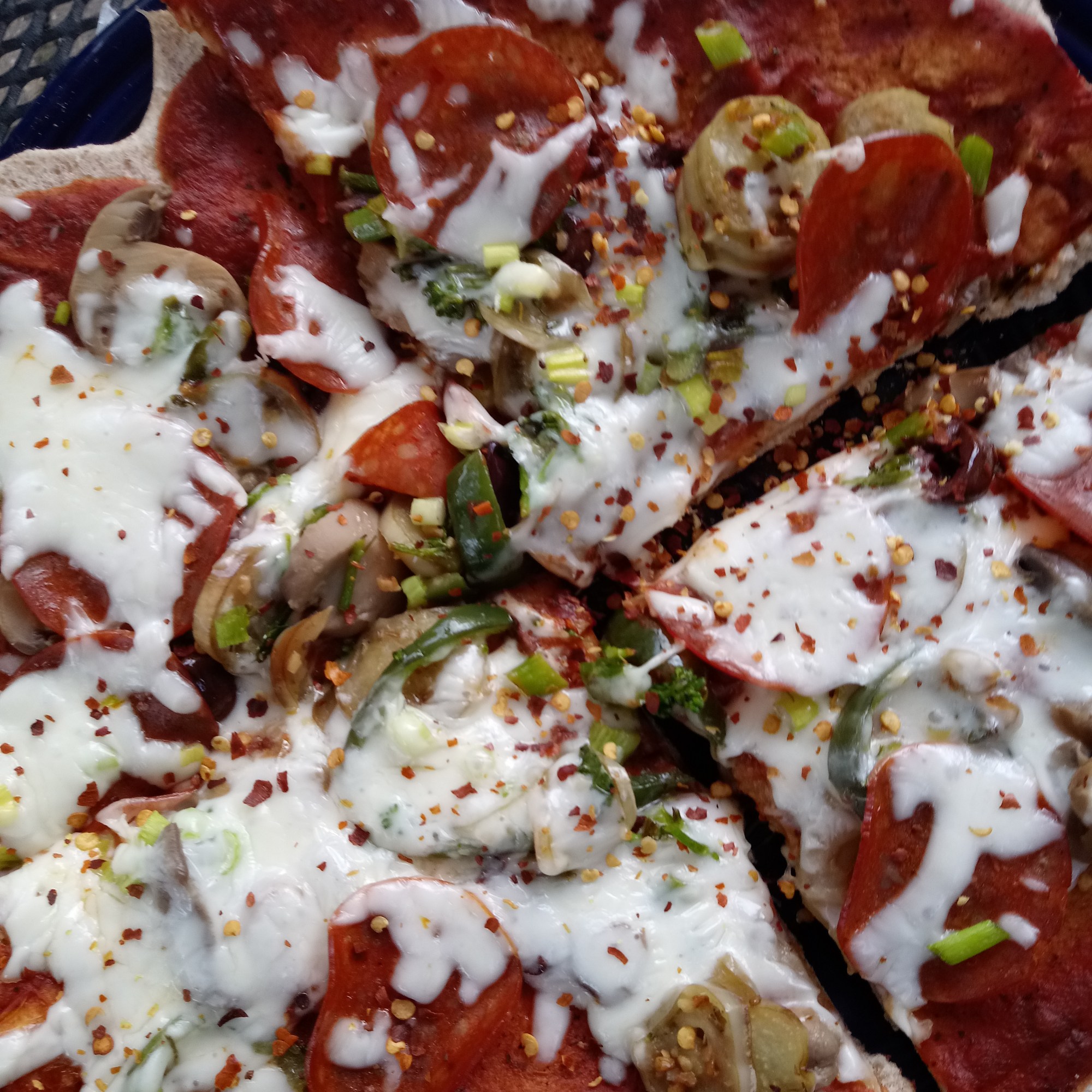 - Pepperoni, Mushrooms, Peppers, Olives, Onions, Eggplant…and anything else you’d like